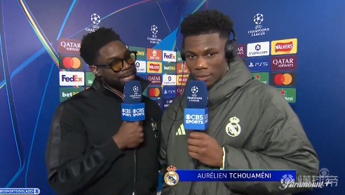 欧冠1/8决赛次回合,皇马客场2-1战胜曼城,皇马中场楚阿梅尼赛后接受了CBS体育的采访。