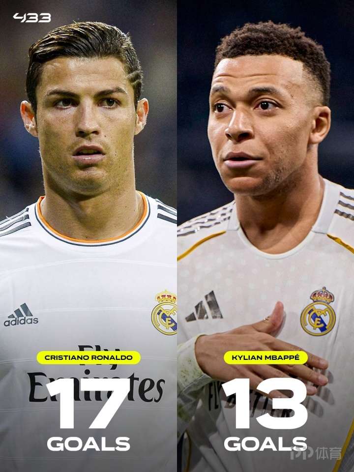 作为皇马头号球星,姆巴佩本赛季欧冠出战9场比赛已经打进13球,高居射手榜第一。而在欧冠单赛季总进球排行榜上,姆巴佩距离C罗在2013/14赛季的17球纪录还有4球之差。